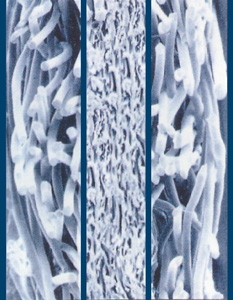 Las microfibras crean una capa fibrosa de intersticios que equilibran por su trama abierta la permeabilidad requerida al ingreso de vapores esterilizantes y su salida controlada para lograr niveles de eficiencia de filtración superior al 90 % por tres micropartículas.